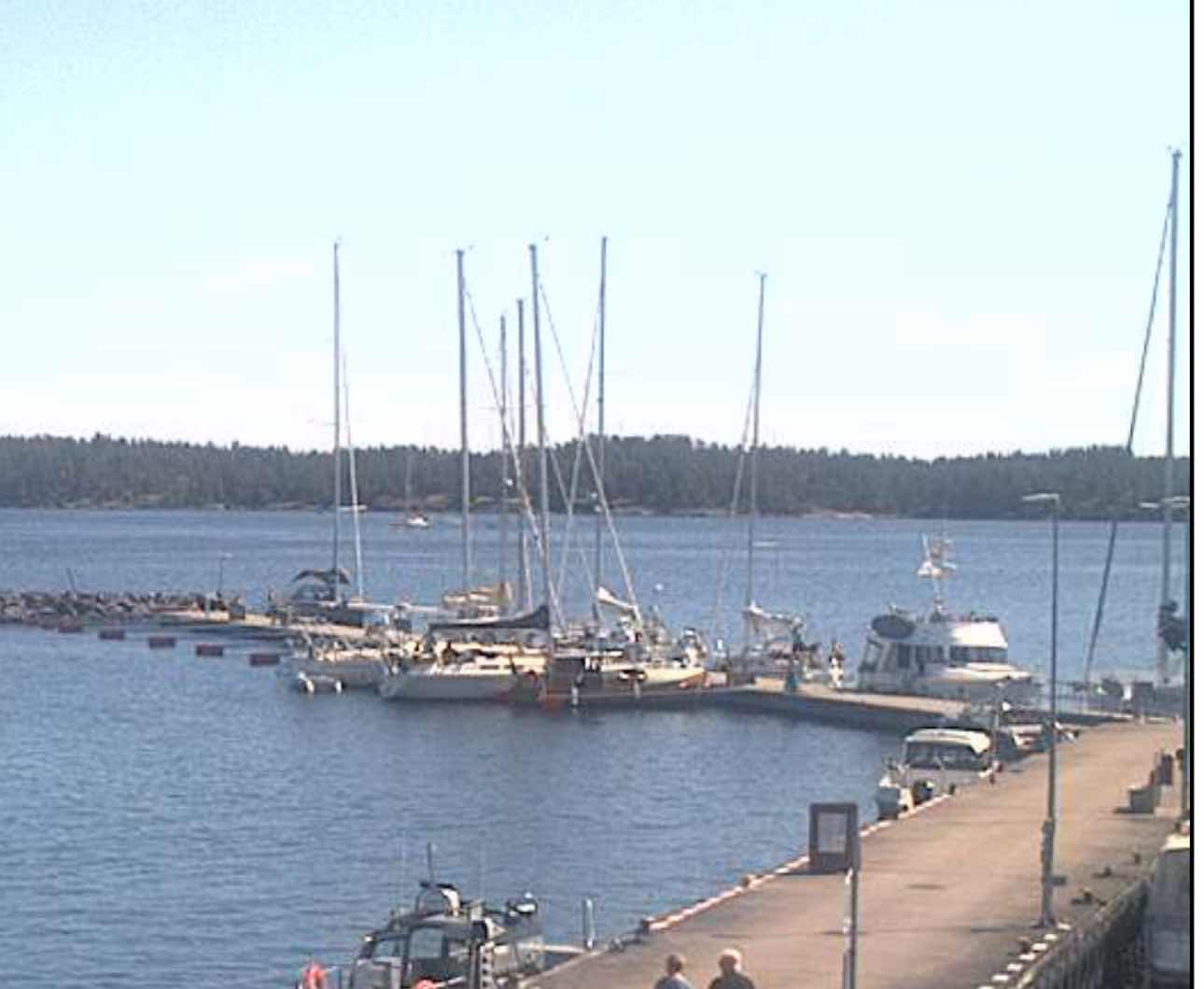 Vi fick en långsidesplats på utsidan av den relativt nya bryggan. Knappt hann vi lägga till innan hamnen fylldes med båtar. Många sökte skydd för det kommande ovädret.