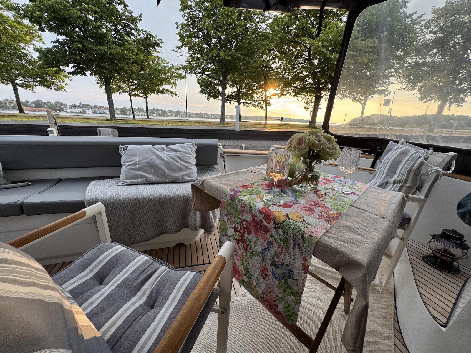 Vi passade på att gå till köpcentret vid Ljungheden när det blev uppehåll. Det tog nästan en timme att gå dit och solen började titta fram och det blev riktigt varmt. Vi köpte ett mindre matbord att ha i aktern och vi hämtade solpanelen. Vi handlade. Jag träffade på en barndoms/jobbarkompis från Ljungsbro. Ett trevligt sammanträffande och jag blev uppdaterad om läget bland vänner jag inte längre har kontakt med. Vi tog en taxi tillbaka till båten.